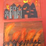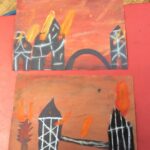 In art, pupils have painted a silhouette of London burning in the Great Fire using watercolours, pastels and black paper.